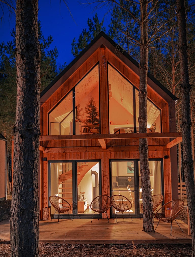 Zwolnij. Oddech po oddechu. Tutaj nic nie musisz — możesz tylko być. Poranki zaczynają się rosą, nie budzikiem. Wieczory kończą się ogniem, nie powiadomieniem. Nasze domki to prywatność zanurzona w lesie. Cisza, która nie męczy — tylko przywraca. Dostęp do natury, ale też do siebie. Zarezerwuj swój kawałek spokoju. I zobacz, jak wygląda dzień, w którym naprawdę nic nie musisz.